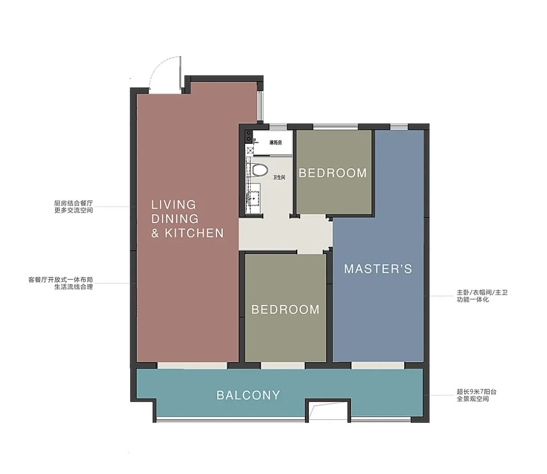 阳台串联起客厅、主卧与次卧,成为第二家庭共享空间。满墙花卉色彩浓郁、对话室外空间的绿意自然。静可看书、品茶、赏花;动则烧烤、观影、轰趴。在这里,打开都市氧吧的万种可能。