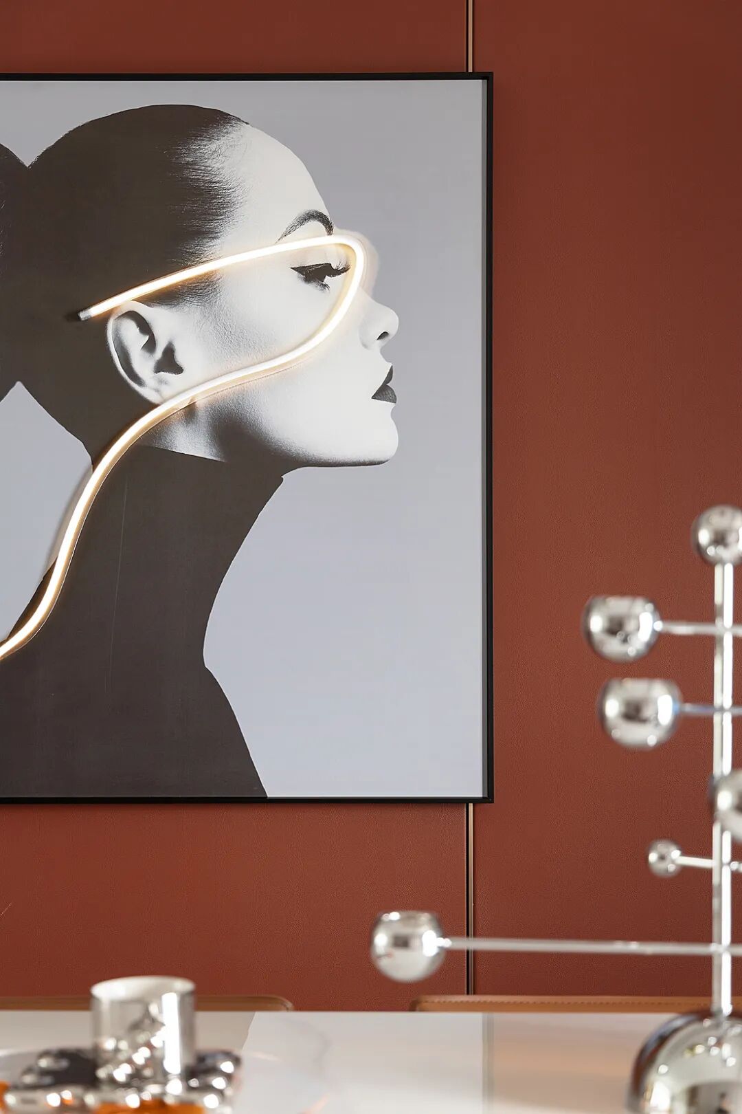 黑白肖像带来悠远绵长的意境,蜿蜒附着着的霓虹灯饰引人玩味。杠杆摇曳,遐思不止。生活远不止是烟火,艺术与美近在咫尺。