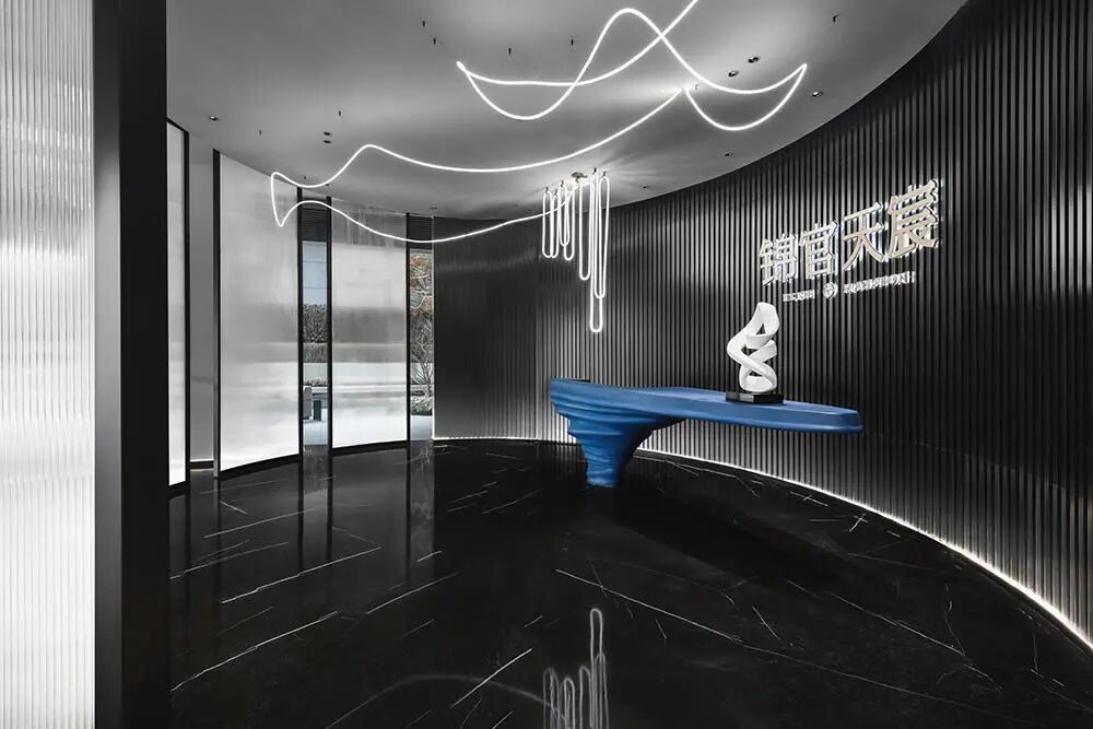 The sales office is just separated from Minjiang River by one mountain. taking the water elements and architecture as the entry point to direct the interior.