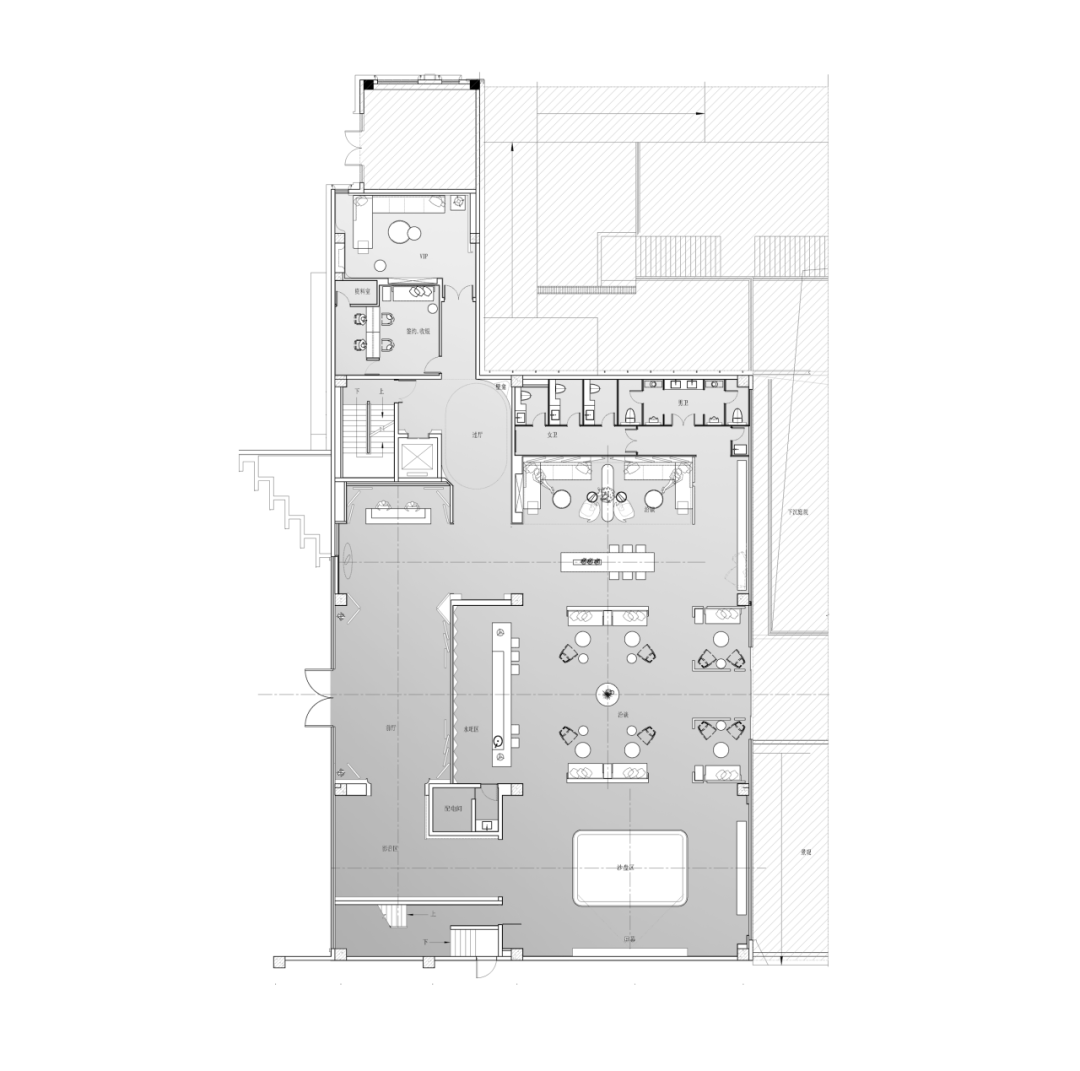 设计师希望私宴包厢拥有品酒雪茄空间的存在,通过材质和灯光将这块区域暂时的间隔开来。相对于就餐和休憩,茶余饭后,这里是可以承载着更深传递交流的场域。