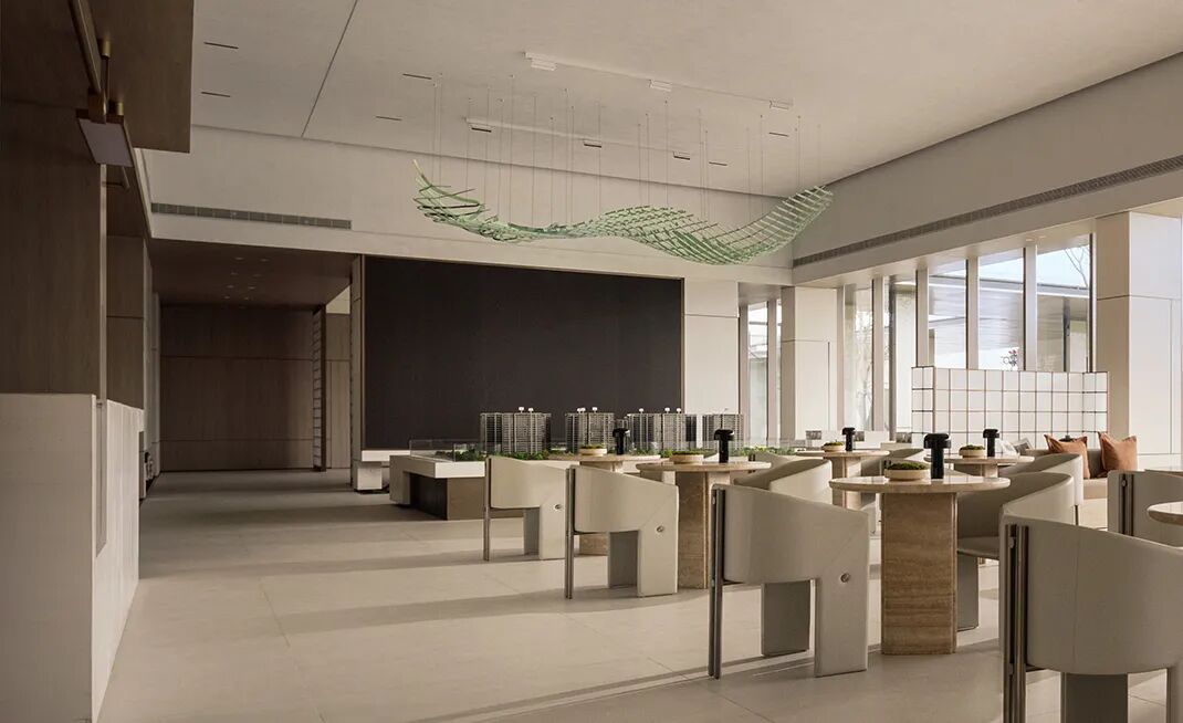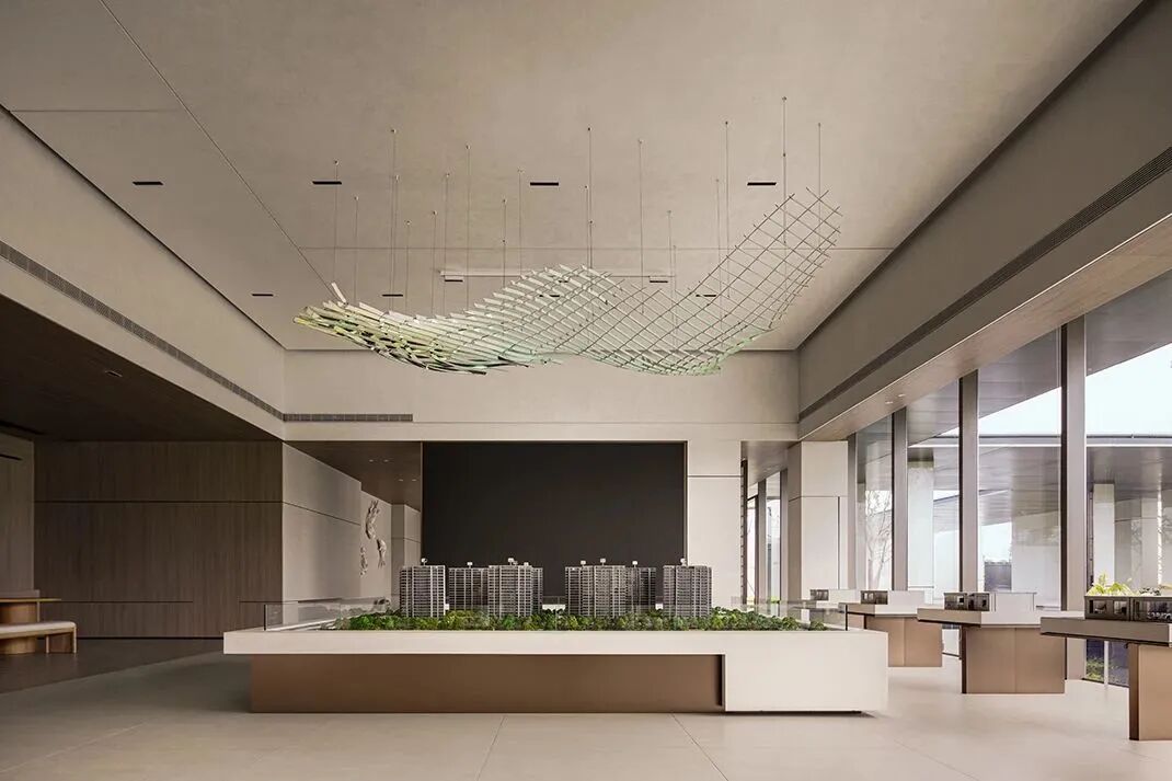 S.U.N DESIGN 携手中建东孚,把产品的可持续性和匠心工艺融入其中,让上海熙江岳售楼处突破标准化产品,以设计不断迭代。