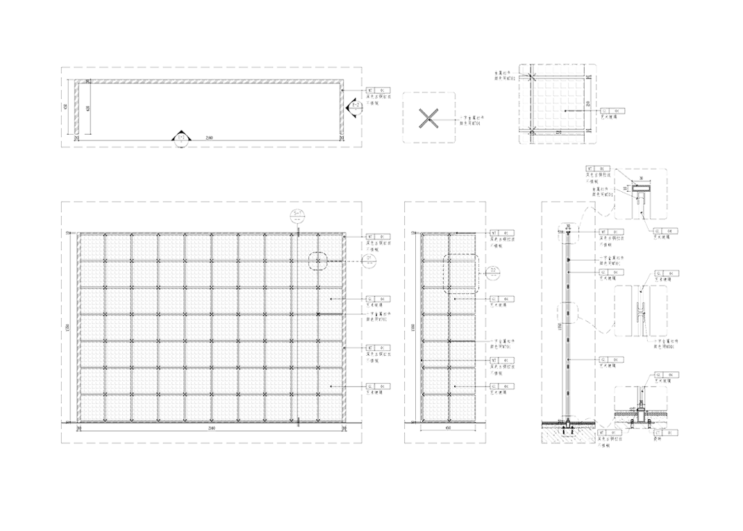 ▲ 艺术玻璃屏风呼应入口,以十字金属扣件相连接。